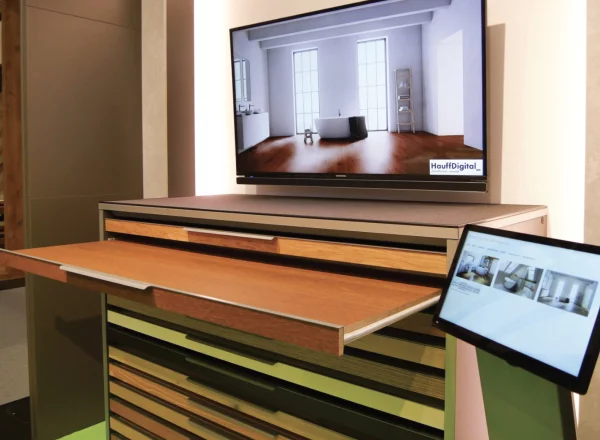 - Kundenwünsche bedienen: interaktive Auswahl von Projekt- und Stilrichtung und gezielte Präsentation von beliebig vielen Raumvarianten pro Materialmuster