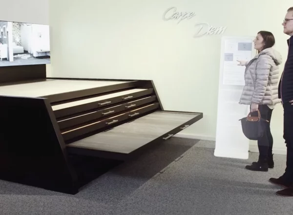 Ob als Einzelmöbel oder als gesamter digitaler Verkaufsraum – der MACH 2.1 Bodenschrank macht in jeder Ausstellung eine gute Figur und punktet durch interaktives Einkaufserlebnis und Kundenorientierung.