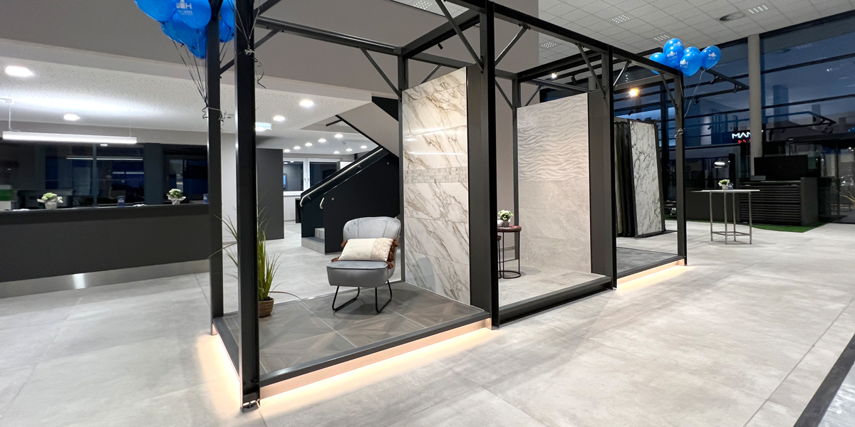 The showroom, shortly after its opening, is already impressing initial customer groups with its multiple digital consultation areas—from tile collages to year-round indoor consultation for outdoor ceramics, natural stones, and paving stones. Through the visualization of product ranges, customers gain confidence in their purchasing decisions.