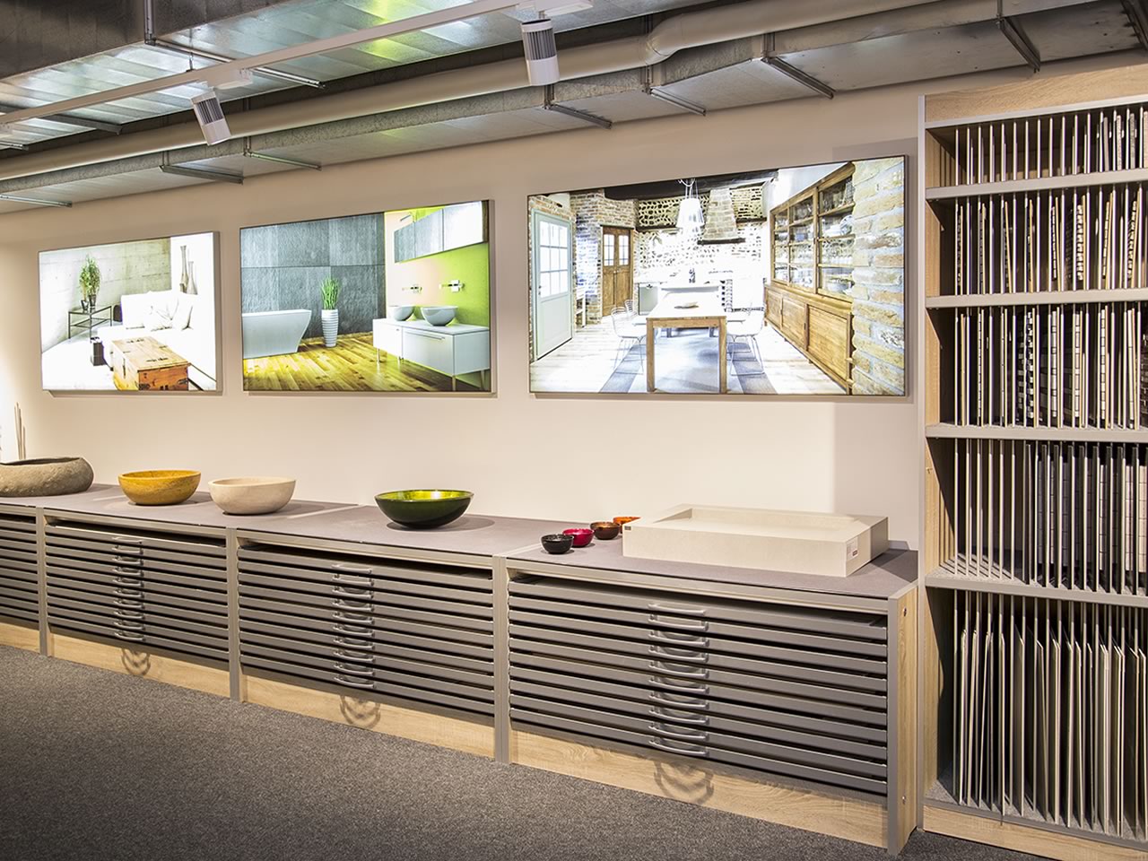 Der Weg zu unseren Collagenbereichen ist genauso durchdacht wie unsere Collagensysteme selber. Erst werden Ihre Kunden z.B. durch Themenräume bzw. Stilrichtungen inspiriert, dann beginnen sie unterschiedliche Kombinationen von Produkten zu vergleichen. In der Kaufentscheidung sicher wird dieser kreative Beratungsprozess durch den zentralen Collagenbereich in direkter Nachbarschaft zu Ihren Arbeits- und Beraterplätzen.