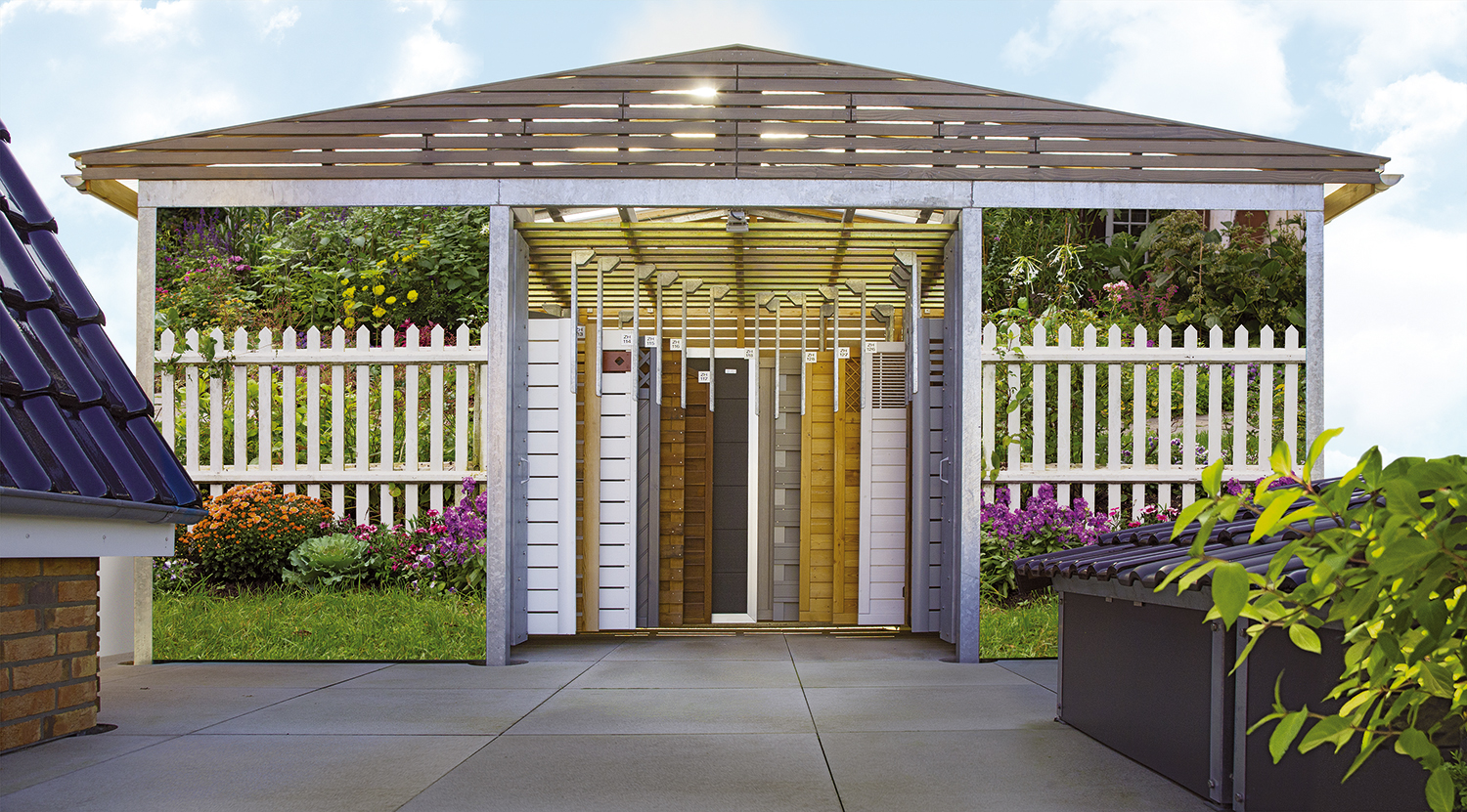 Da Sonne und Licht auf Dauer zu unschönen Veränderungen am wertvollen Holz führen können, ist Wetterschutz für Holzbaustoffe ein wichtiges Thema. In unserem Zaunhaus befinden sich auf beiden Seiten leichtläufige Magazine für Ihre hochwertigen Holzzäune. Außerdem gibt es Auszüge für Terrassenbeläge zum direkten Vergleich. Ihre wertvollen Holzprodukte haben so eine längere Nutzungszeit und Ihr Kunde immer eine hochwertige Optik, die zum Kauf inspiriert.