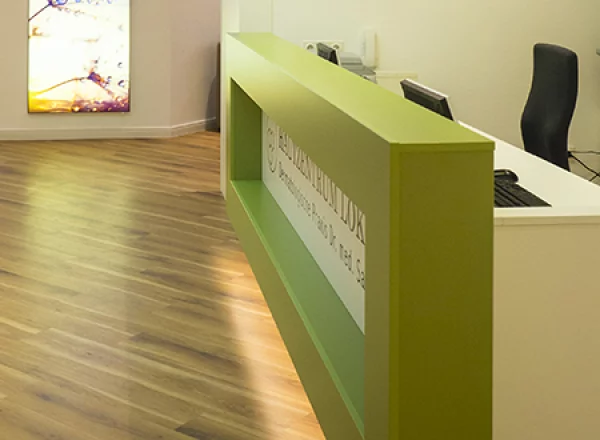 Mit einem individuell gestalteten Empfangstresen glänzt Ihr Unternehmen bereits im Eingangsbereich mit einem unverwechselbaren Gesicht. Deshalb sollten Sie sich für eine hochqualitative Lösung entscheiden, die wir mit unserem Know-how jederzeit für Sie realisieren können. Wir entwerfen ganz nach Ihren Vorstellungen ein Empfangsmöbel für Sie, das Funktionalität und ansprechende Optik gekonnt vereint und sich harmonisch in das Ausstellungskonzept integriert.