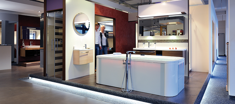 Hans Stumpf: Richtig, darum haben wir uns im Vorfeld auch viele Badausstellungen angesehen. Dabei habe ich eins empfunden: Sehr viele unserer Kollegen bauen superschöne Ausstellungen, allerdings mit Exponaten, die in der Gesamtsumme schwindelerregend teuer sind, und sind der Meinung, je teurer und exklusiver, umso besser. Darum war es uns so wichtig, das alle Exponate, die wir zeigen, auch bezahlbar sind. Ich wollte immer eine Ausstellung, die bezahlbar ist und eine breite Masse anspricht. Dass wir unser Ziel erreicht haben, zeigt sich schon alleine daran, dass wir 30 Prozent mehr Frequenz in der neuen Ausstellung haben. Und unsere Klientel hat sich verändert. Plötzlich kommen Kunden in die Ausstellung, die wir vorher nicht hatten und wir können viel leichter hochpreisig verkaufen.