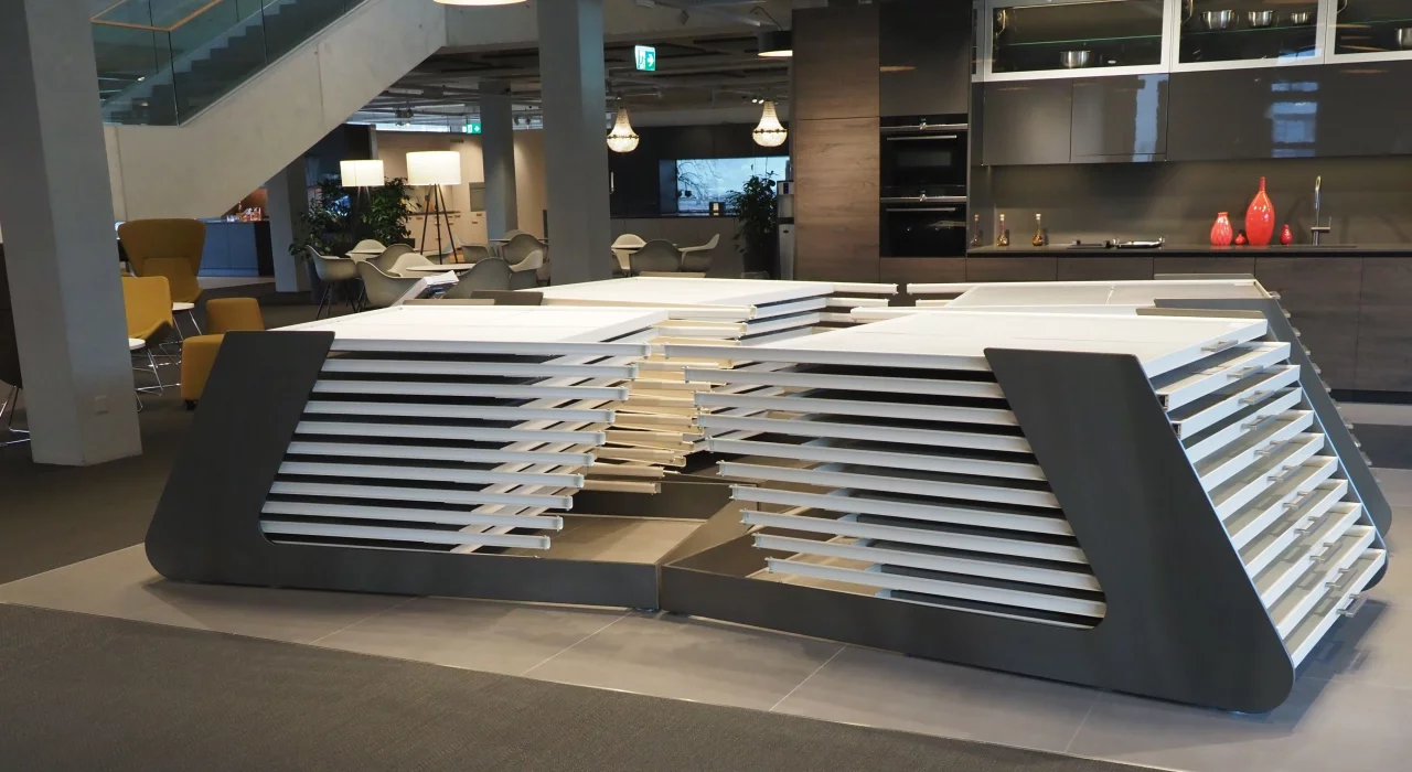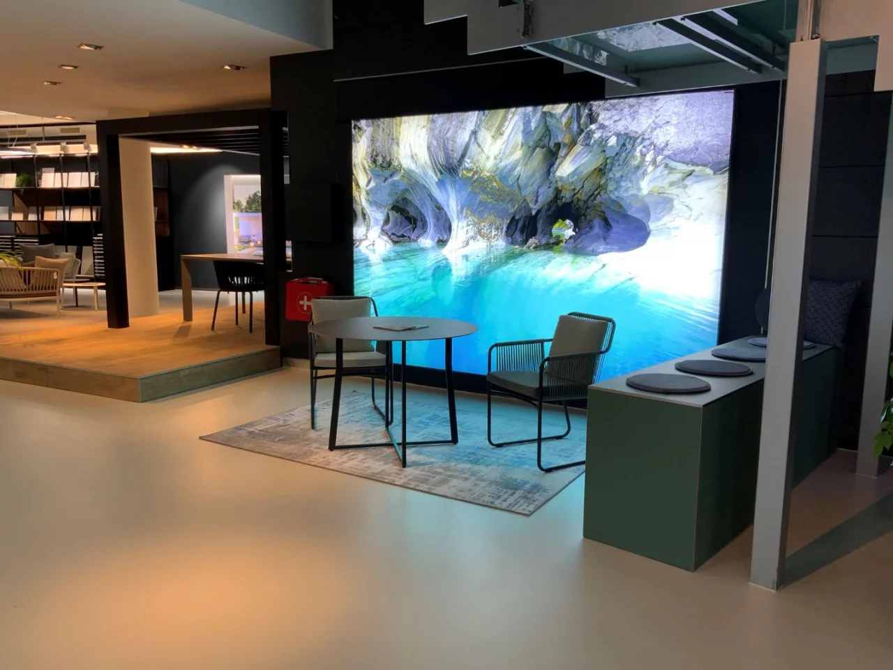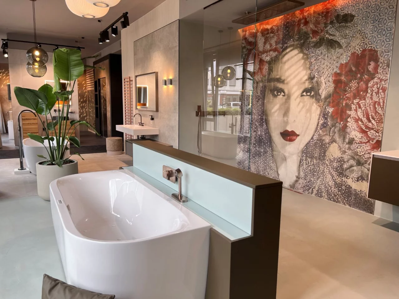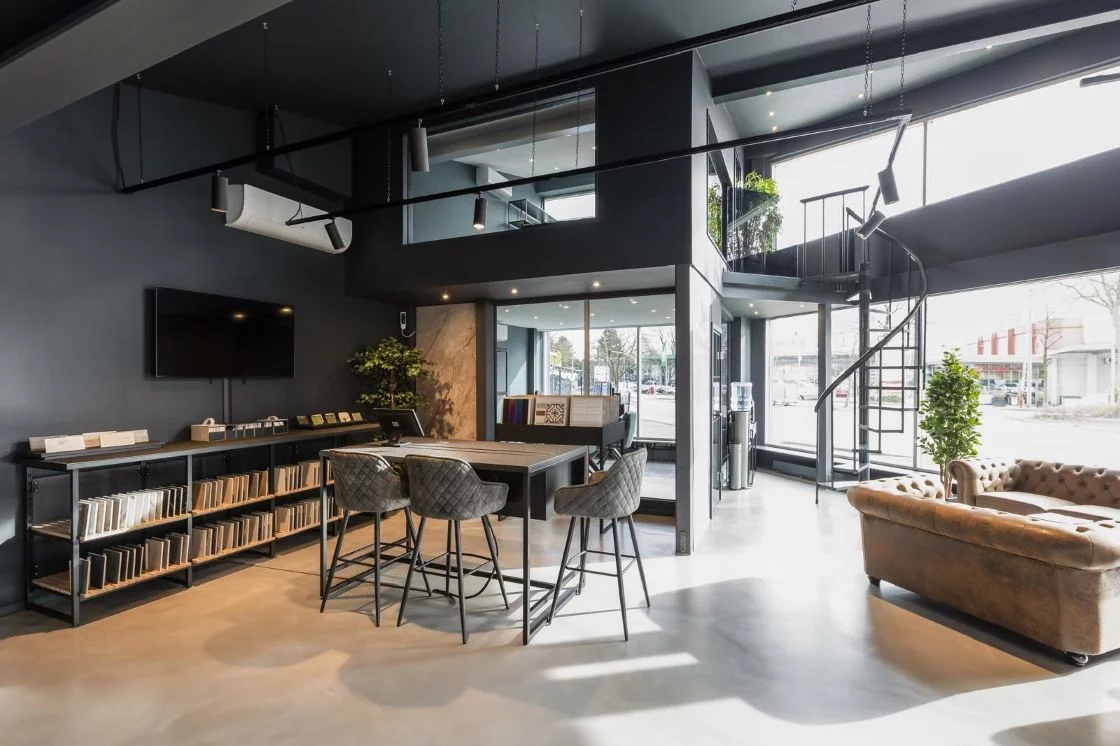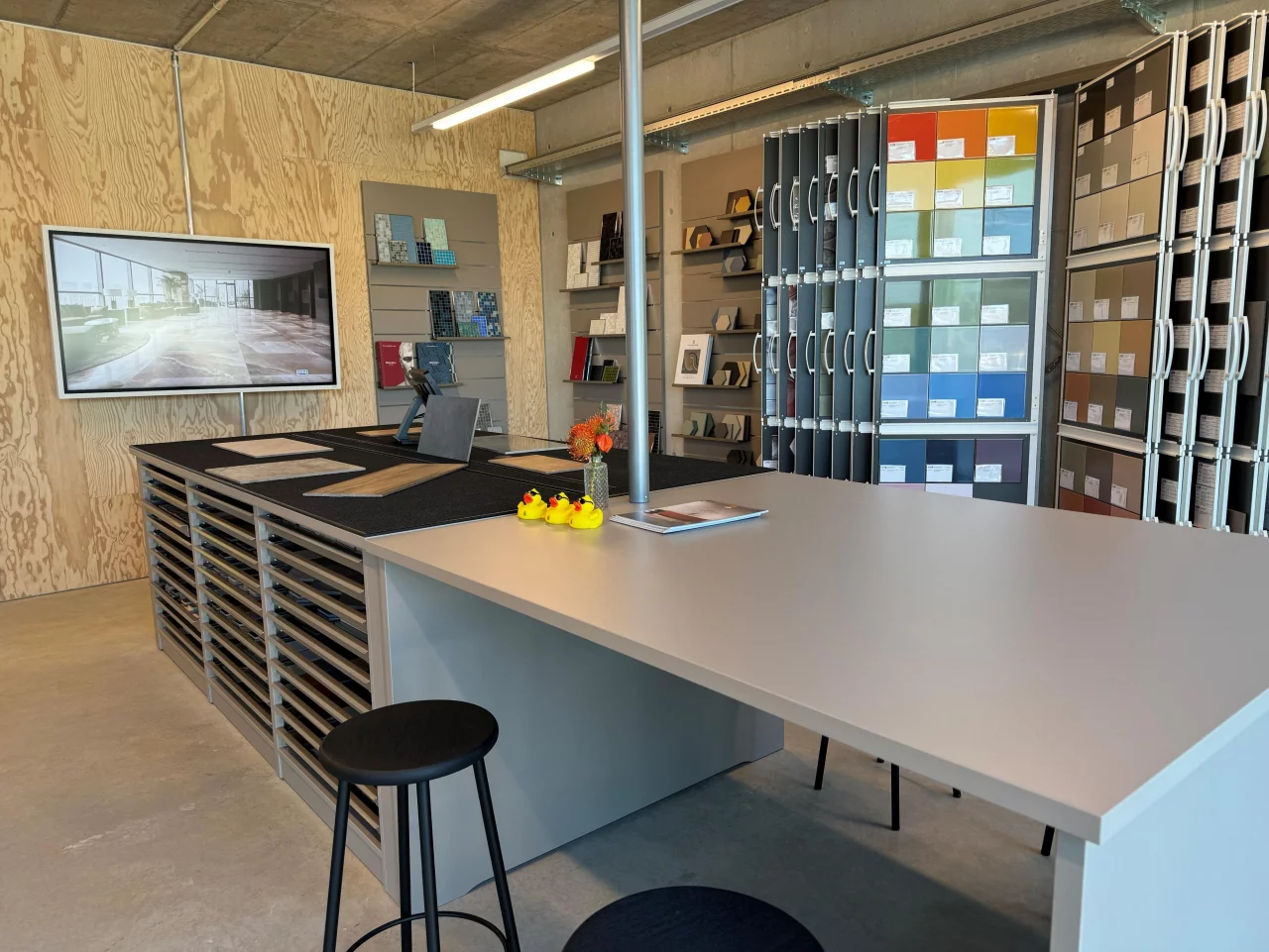 Hier sehen Sie exklusive Verkaufsräume, die wir gestaltet haben - hochwertige Showrooms für Fliesen, Sanitär, Parkett, Türen sowie edle Außenbaustoffe wie Granit-Terrassenplatten und großformatige Terrassenfliesen.