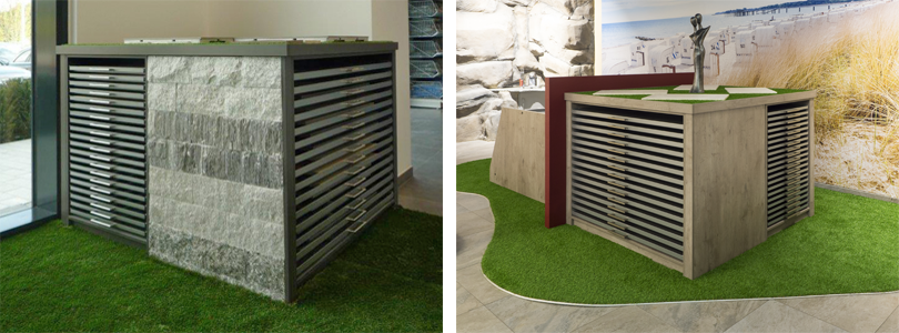 Daher sollten Sie Ihren Kunden die Terrassenbeläge auch entsprechend rechtzeitig präsentieren, zum Beispiel mit unserem Gala Magazincube. Diese kompakte Insellösung setzt sich aus zwei Magazinschränken in unterschiedlichen Größen und einem offenen Prospektregal zusammen.
