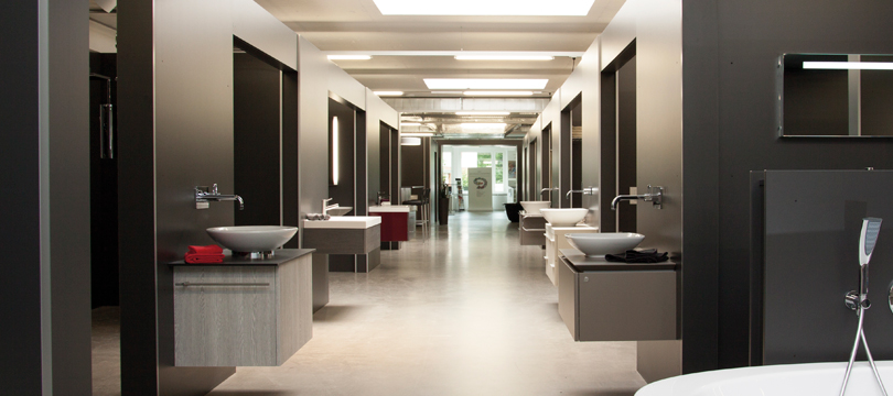 In der Schweiz ticken die Uhren auch in Sachen Baustoffhandel etwas anders. Der DIY-Markt ist nicht besonders ausgeprägt. Im Gegenteil, der Schweizer hat selbst für kleinere Projekte wie ein neues Bad seinen Architekten. Er gibt auch mehr Geld für die Einrichtung aus. Nicht unbedingt für einen höheren Standard, aber für Individualität. Daher ist das Vertrauen in geschmacklichen und technischen Fragen in den Architekten sehr groß. Die ganze Ausstellung ist eine Bühne, auf der sich die Architekten und das Ausstellungsteam frei bewegen und arbeiten können.