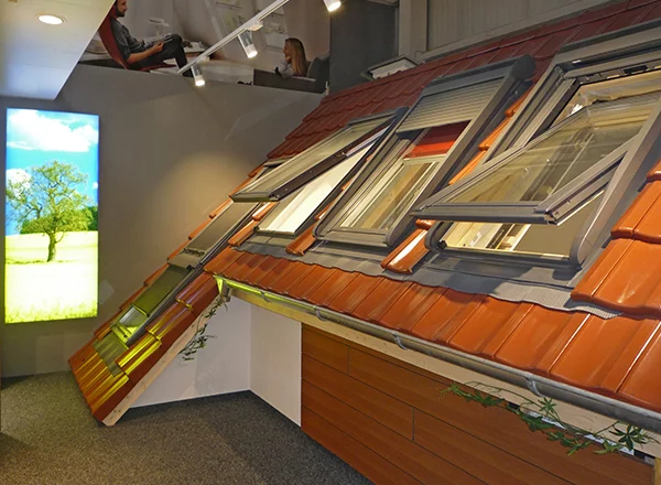 Schon beim Betreten der Ausstellung sind alle Sortimente eines Baustoffhändlers klar zu erkennen. Die durchdachte Wegeführung und eine transparente Architektur laden zum Erkunden ein. Zusätzlich wecken eine akzentuierte Beleuchtung und großformatige LED-Bildmotive die Neugier. Alle Beratungs- und Ausstellungsbereiche sind danach ausgerichtet, die Wünsche der Kunden zu erfüllen.