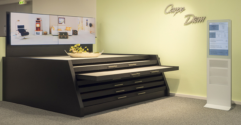 Bei uns in Bad Schwartau können Sie die Funktion und Technik unserer Präsentationsmöbel auf die Probe stellen und sich davon überzeugen, wie einfach die Beratung Ihrer Kunden sein kann. Ganz aktuell dazu haben wir Neuigkeiten zu dem Thema digitale Vernetzung von Internet und stationärem Handel.