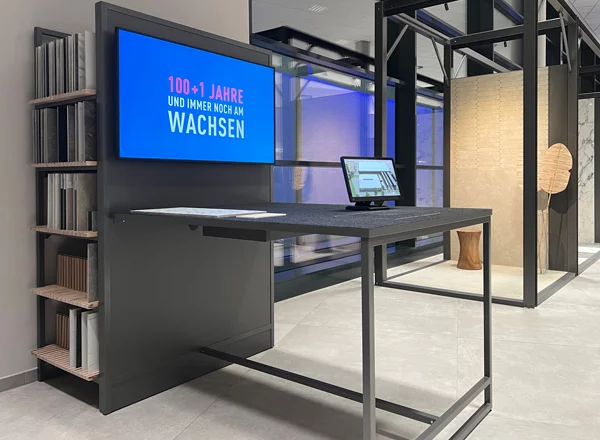 Über mehrere digitale Beratungsbereiche von der Fliesencollage bis zur ganzjährigen Indoor-Beratung von Outdoorkeramik, Natur- & Pflastersteinen begeistert der Schauraum schon jetzt kurz nach der Eröffnung die ersten Kundengruppen, die durch die Visualisierung der Sortimente Sicherheit in ihrer Kaufentscheidung gewinnen.